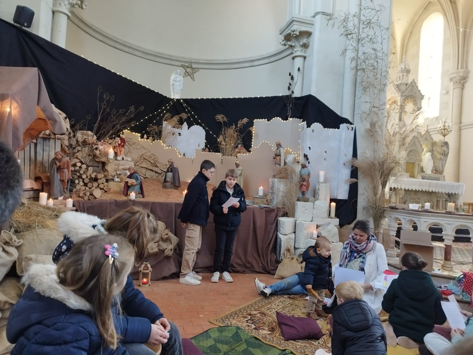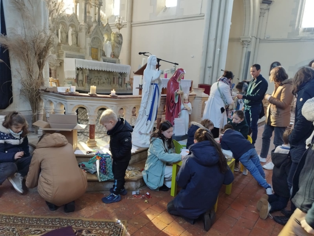 Après un chant, un temps était proposé pour les enfants pour écouter le texte de l’annonciation. Accompagné par les adultes ils ont pu échanger sur l’attente, la confiance, comment se préparer pendant l’Avent à la fête de Noël.