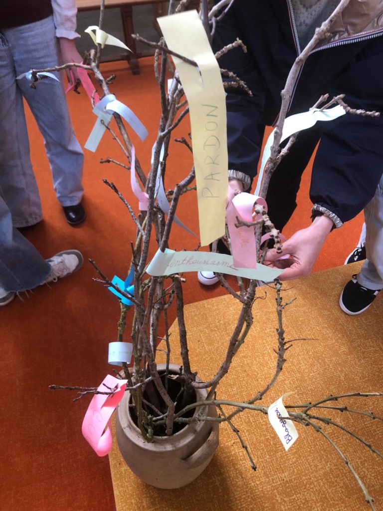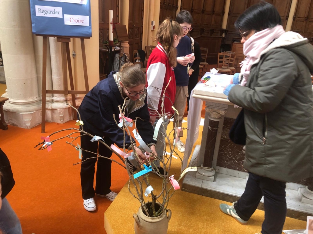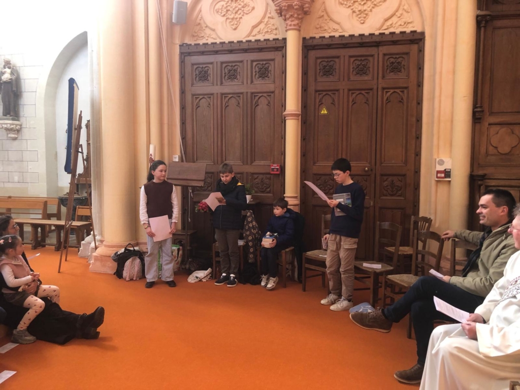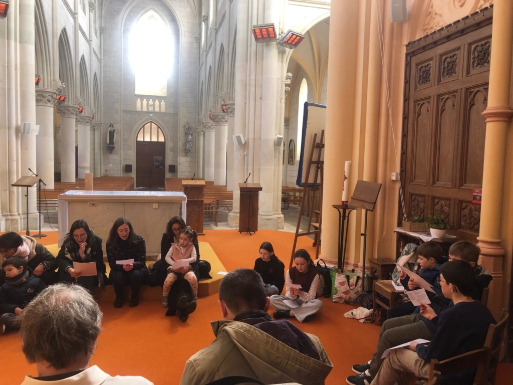 Ci-desous les photos de la célébration enfance et familles qui s’est tenue le 15 mars à Landemont. Le thème était nous avons tous un talent. Les enfants ont réalisé une cocotte des talents et certains parents ont échangé avec Jean Yves, diacre, sur l’évangile de la parabole des talents. Petits et grands ont ensuite écrits sur une bande de papier leur talent qu’il pouvait faire fructifier ou partager. Ce bandeau a été accroché sur des branchages installées devant l’autel que vous pouvez encore découvrir à l’église de Landemont.