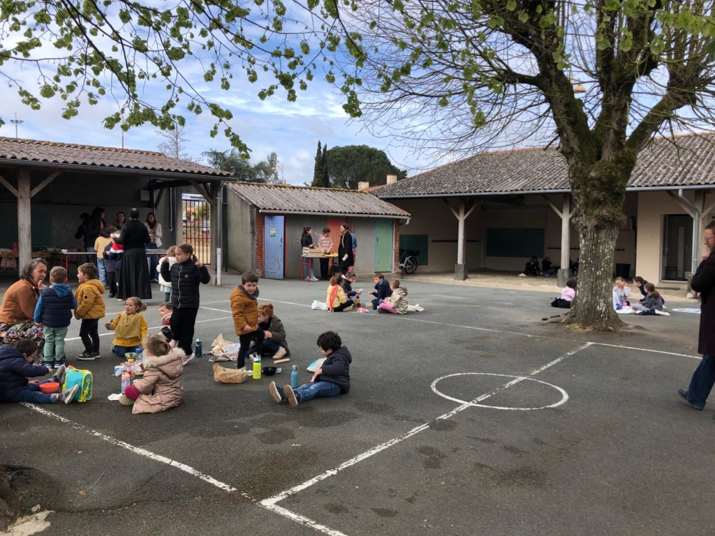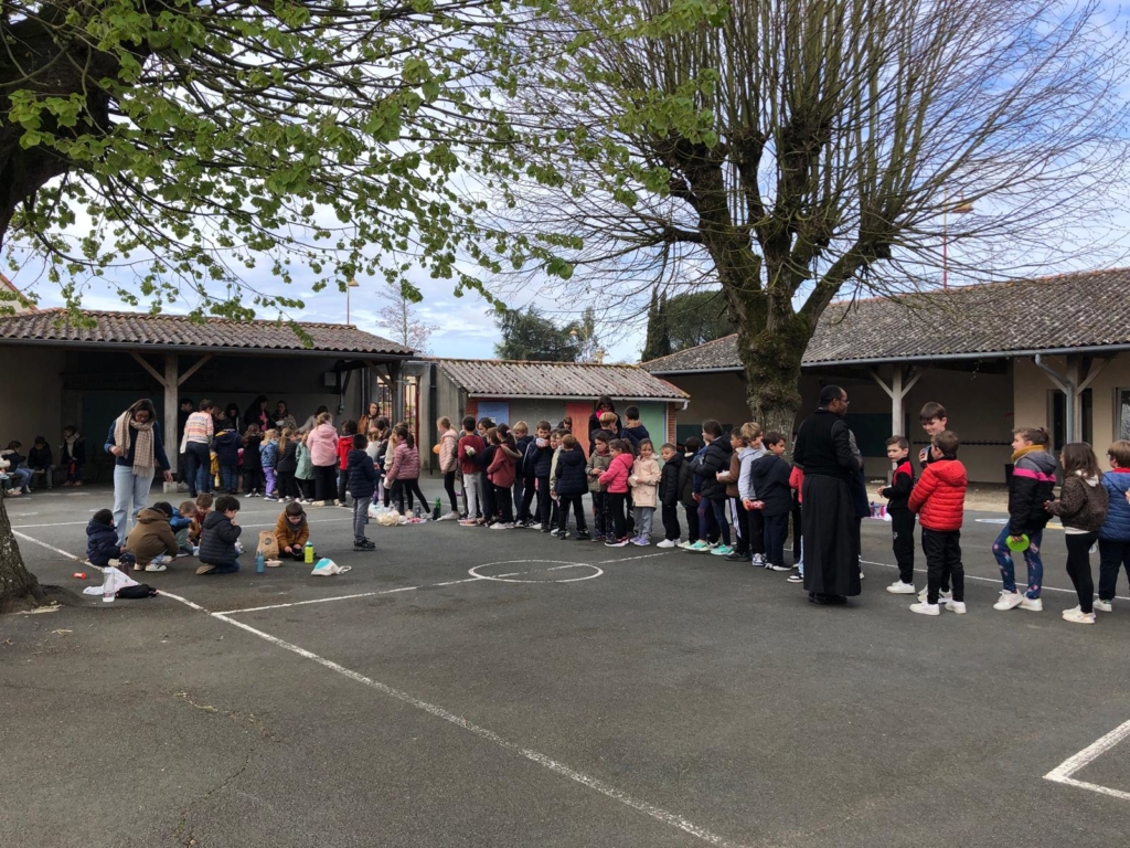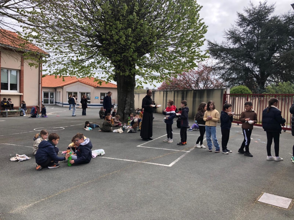 L’école de la Coulée St Joseph de Liré a organisé une animation partage du bol de riz après la célébration de Pâques organisée par les ecoles.