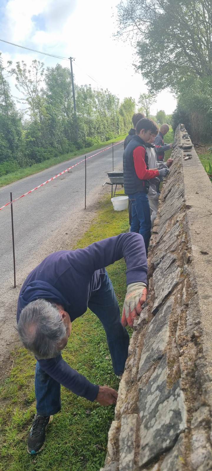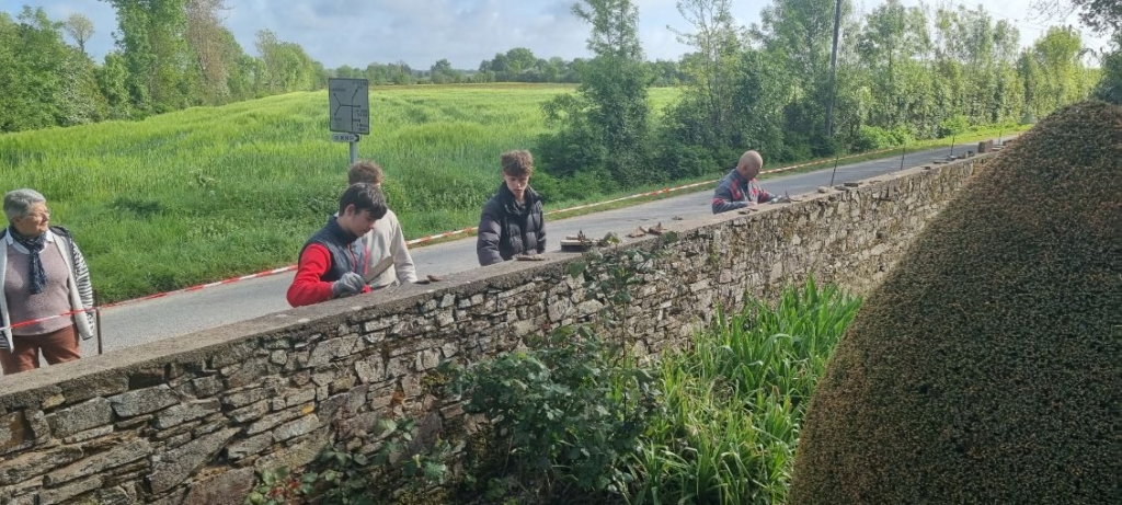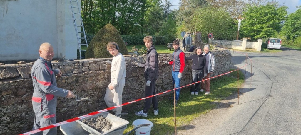 Pendant les vacances scolaires, quelques chantiers sont proposés aux jeunes de la commune d’Orée-d’Anjou sur les différents pôles de la commune. Cette semaine, quelques jeunes (encadrés par des membres de l’association de la chapelle des Martyrs et des animateurs) se sont activés autour du mur extérieur de la cour de la chapelle des Martyrs. Avec l’aide de quelques brosses, ils ont commencé à enlever mousse et herbes indésirables, puis avec du ciment et avec des truelles ils ont pu refaire quelque joints et recoller quelques pierres.